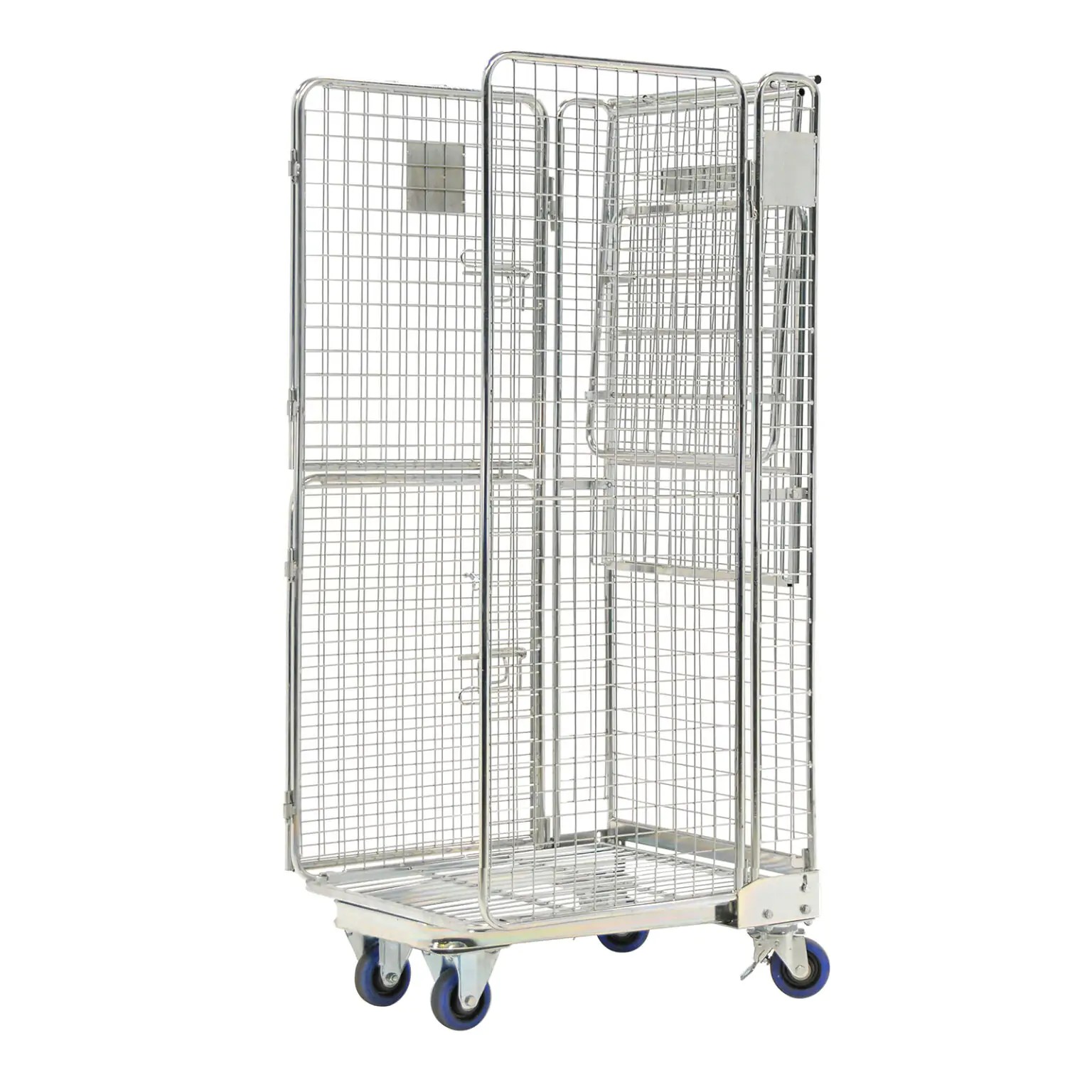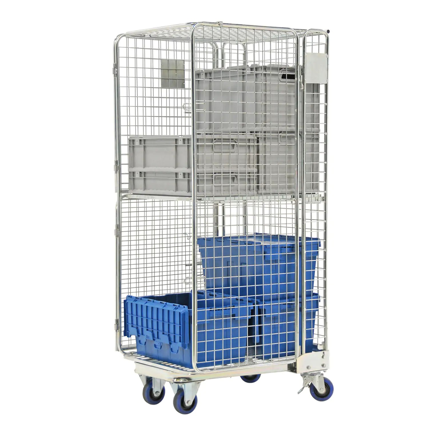 Nestbarer Anti-Diebstahl-Rollbehälter 5-seitig geschlossen mit klappbarem Zwischenboden, Nutzhöhe 1640 mm